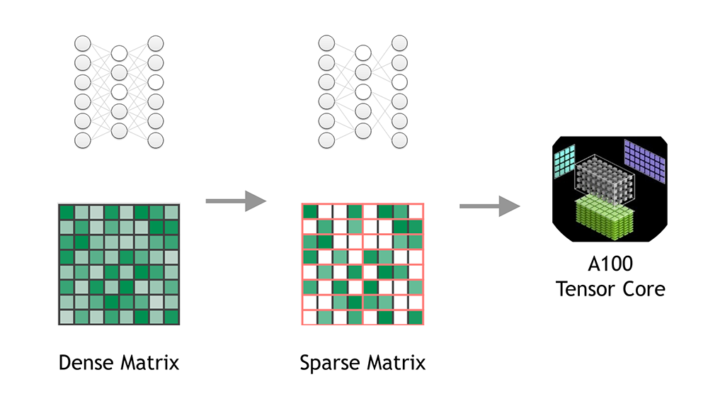 Another example is Pruning, one of the primary techniques for implementing sparsity. Pruning focuses on reducing parameters in existing networks, either individually or in groups. By automatically reducing elements of the model such as weights, neurons, or even whole layers, pruning helps to reduce the complexity, computational demand, and memory footprint of a model.