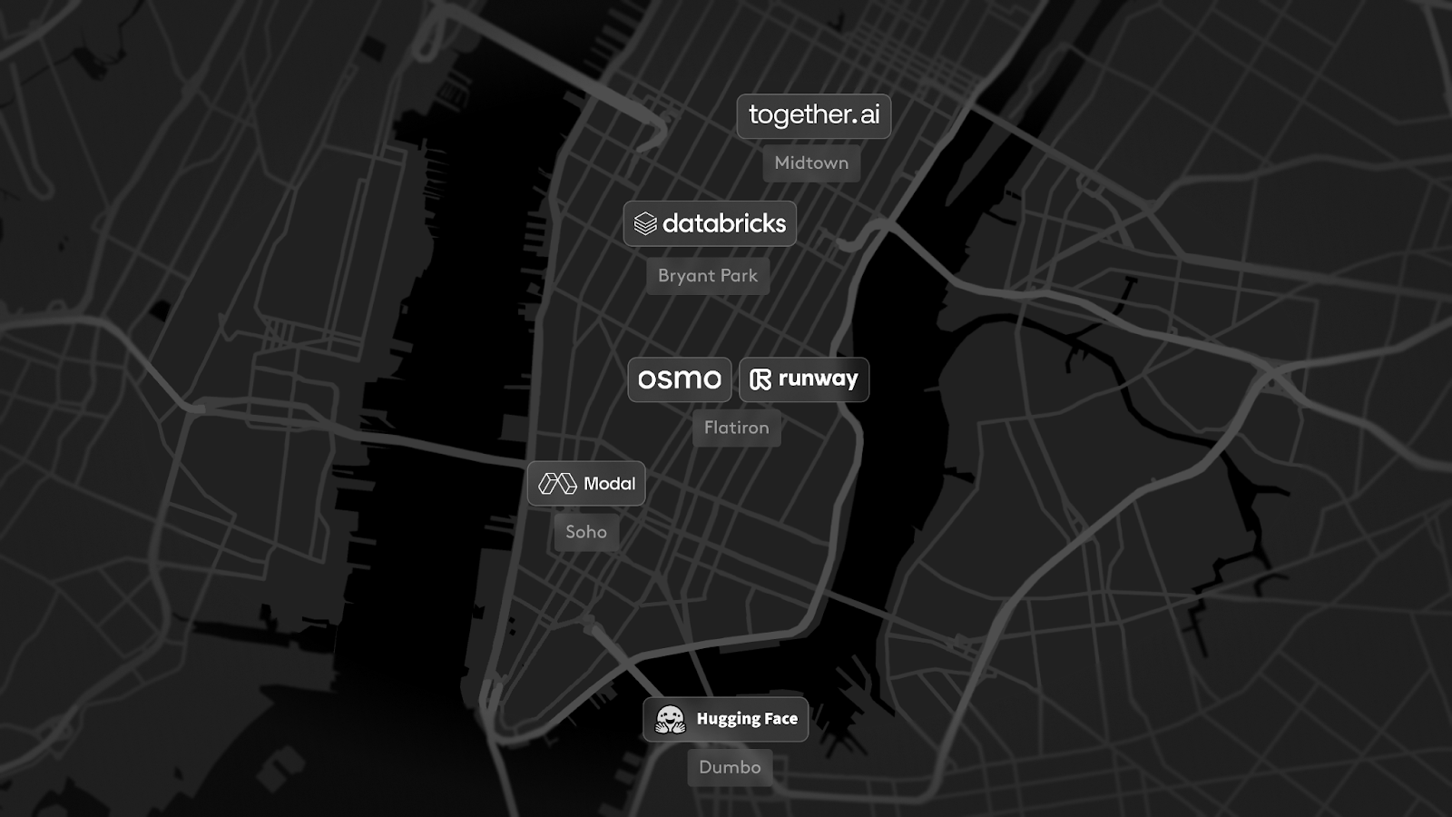 Lux was founded in New York City in 2000, and our first AI investment started here in 2013. Two decades later, most of our AI portfolio companies are headquartered here, including Hugging Face, Runway, Osmo.ai and Modal. Others like Together, Clarifai and Databricks (MosaicML) have a major presence here.
